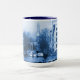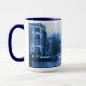 Amsterdam Holland Delft-Blueware-Look mugg. EnLook skrivev ut muggen med Zuiderkerk (sydlig kyrka), drawbridgen, fartyg och kanalhus i Amsterdam, Holland, Nederländerna. Denna unika Amsterdam Holland cityscapemugg är fullständigt anpassadet, tillfogar din texter och bilder!