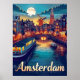 Upplev Amsterdams fantastiska skönhet nattetid med vår resa och illustration. Detta fängslande biet fångar upp stadens koniska kanaler, som lyfts upp av den varma glöden av ströljus och reflektioner som dansar på vatten. Bild går själv längs historiska broar, njuter av ambitionen hos mysiga kaféer på kanalen och känner magin i Amsterdams nattliga charm. Bejka på en resa till Nederländerna, där varje kanalhörn är en duk av natt-fantaster.