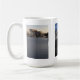 Souvenirmugg av Amsterdam, med foto av kanalhus, stoperaen på den Amstel floden och Groenburgwalen med den Zuiderkerk kyrkan.