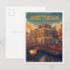 Amsterdam Nederländska Vintagen Illustration Trave Vykort