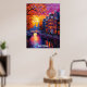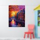 Ge stadens charm i Amsterdam in i ditt utrymme med denna stadssilhuett-affisch. Med stadens ikoniska kanaler, cyklar och landmärken som Rijksmuseum är detta personliga tryck perfekt för älskare av nederländsk kultur och urban konst. De livfulla färgerna och den moderna kompositionen gör det till ett bra tillägg till alla rum eller som en present till resenärer.