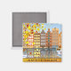 Amsterdams stadskanal Höst Färgfull Fall Magnet. Amsterdams stadsvy (kanal, hus, båtar och gren i höst träd med löv som faller och flyger). Tema för hösten färg: gult, orange, brun, blå.