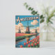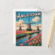 Upplev Nederländernas skönhet med det här vykortet vintage-stil som innehåller Amsterdams ikoniska tulip fält. De sjudande blommarna, parade med en tidlös återdesign, firar det rikerna kulturarvet i land och de nederländska landskapens charm. Perfekt för älskare av vintage resor konst, natur och färgstarka blommigtar.
