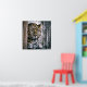 Ett foto av en underbar Amur Leopard mot en kedjebakgrund som tagits i Utahs Hogle Zoo med skriftligt tillstånd och kredit som getts till dem. Detta vackra vild katt finns med på listan över utrotningshotade arter.
