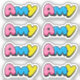 Namn Amy i färglös bubbelgum-text.