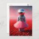 An astronaut in a tutu disco ball head poppies vykort