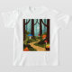 The forest features tall trees and mushrooms in various colors, including blue, red, and orange.