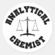 Analytisk kemist - vit dekal med svart kollegialt stil-tecken och antikbalansgrafik.