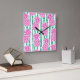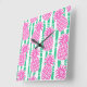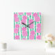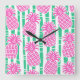 Ananas Bamboo Rand Rosa och Grönt Mönster Fyrkantig Klocka
