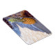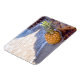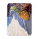Med en nyplockad tropisk ananas som lutar mot sten i sanden medan vackert hav vågar kraschar runt det.