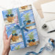 Hjärtsolglasögon på hel ananas i sand med årskal och stjärnfisk.