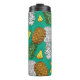 Ananas med löv, små bitar. Sömlös mönster med biet av tropiska frukter mot gröntens bakgrund. Sommarens vintage illustration. Botanisk konst