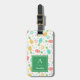 Färgfull bagagemärkning med en mönster av ananas, anananasskivor och anananasbitar i rosa, turkos och gult mot vit bakgrund. På anananas mönster finns det en grönt som du kan lägga till din ursprungliga etikett och namn. Baksidan har en grönt och vit strimlad mönster. Tvätta personligens bagagemärke, perfekt för tropisk semester och sommarhelgdagar.