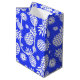 Färska tropiska nyanser av ljusblå och vit ananas och daisy blommor i presentsäcken mönster, perfekt för ge gåvor. Original Graphics Art mönster och design av Sarah Trett.