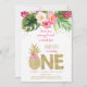 Ananas Rosa Guld Blommigt Första födelsedag Inbjudningar