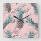 Ananas & Rosa Marmor Sväng Modern Tropisk Chic Fyrkantig Klocka