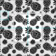 Välj en egen ananas i färg med den här grafiskt tropiska frukten och blommorna upprepar mönstrad väv på vitt och visas här i svart. Perfekt för frukt- och tropisk hantverksverksamhet samt projekt för utformning av sådd. Den ursprungliga konsten och designen från mönster av Sarah Trett.
