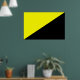 Denna utformning präglas av anarkapitalismens flagga, som är en politisk filosofi och ekonomisk teori som förespråkar att man avskaffar centraliserat stater samtidigt som man stöder fria marknader, privat egendom och en höger-liberal tolkning av egenansvar. Anarkapitalister anser att samhället tenderar att avtalsmässigt reglera sig självt genom att delta i den fria marknaden.