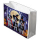 En lekfull halloween scen med en busig liten valp som tittar ut från en utskuren pumpa, omgiven av spökligt-roliga höststämningar. Med fräck charm och höstfärger är det den perfekta dosen humor för säsongen.