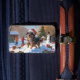 En helgdag med hjärtslitande hund i snö, som bär en julhatt och omges av färgfulla presentlådor. I bakgrunden bygger barn snögubbe bredvid ett Julgran som är täckt av snö och skapar en glatt vinter under. Perfekt för att sprida helgdag och fånga julens magi.