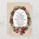 Antikavis tittar bröllopsinbjudan utförd i en bedrövlig dammbakgrund. Bilder av vintage ro omger ett elfenbensdekorativt ovalt textområde med svart anpassningsbar. Anpassa all text till din speciella dag. Matchande produkter är tillgängliga.
