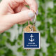 Anchor Kapten Ditt namn eller Namn-flottblått Fyrkantig Silverfärgad Nyckelring