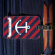 Röda och marinerade rand ge detta ankarbagagemärke för sjömän stil. Anpassa bagagetaggen genom att ändra det mobila numret till kostym som du behöver. Designen kommer från originalteckningen.