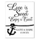 "kärlek är sött" frimärke. Detta förtjusande frimärke är personlig med lycklig-parets namn och deras bröllop-datum.