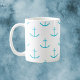 Tycker du om nautiskt tema mugg? I mugg finns det ett mönster av turkosbåtankare.