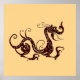 En mystisk dragon på blekens bruna bakgrundsdesign.