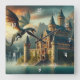 Ancient Castle under attack från en flygande drake Fyrkantig Klocka