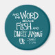 Bold Christian typography: “The Word became Flesh” — John 1:14. Handwritten dark green scripture for faith apparel or decor. Minimalist Bible verse design centered on Jesus.