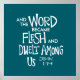 Bold Christian typography: “The Word became Flesh” — John 1:14. Handwritten dark green scripture for faith apparel or decor. Minimalist Bible verse design centered on Jesus.