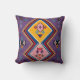 A vibrant, symmetrical fine art illustration inspired by traditional Andalusian weaving, featuring bold geometric diamonds in deep violet, saffron, and soft pink, accented with intricate tribal-style motifs and a classic red decorative border.