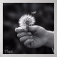 En öm hand håller en maskros redo att skingras i vinden. I svartvitt fångar bilden renheten i ett ögonblick när en önskan släpps ut i det okända — enkel, bräcklig och full av hopp.