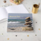 Denna gäst bok har en fredlig utformning av staplade stenar i strandsand med havet i bakgrunden. Textmallen personlig kan anpassas med din händelserubrik eller tas bort.
