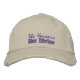 Hon hedrar hennes gudomliga, lila förbroderade distriktstrådar Distress Chino Twill rustic stone baseball sockel. En julklapp på andlig.