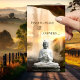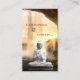 Affärskort med en staty av Buddha framför ett vattenfall vid solnedgången. På baksidan finns en neutralt av målat trä. Underbar för en andlig-rådgivare eller auralläsare.