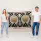 Denna tilltalande filt har guldliknande yantraliknande cirklar i en guld-gult-rik, designad för att återspegla andan i det gamla inslag. Som komplement till det centrala motivet används geometrisk grafisk mönster i grått-svarta och beige-guld-skuggor. Konstruktionen visar två yantras, som var och en är försedd med ett unikt struktur som ökar sin grafiska komplexitet och visuella intensitet, vilket ger en känsla av insiktsfull betydelse.