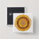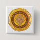 Slår den buddistiska designen för den ändlösa fnurran med gul och orange cirkulärgrunge med mummel för Om Mani Padme i elegant omgeende text. I den inre bruntet cirkla är större mummeltext för Om Mani Padme. I centrera med en täckning av upplyst strålar är ett ändlöst fnurrasymbol, ett av de åtta Auspicious symbolerna av buddism.