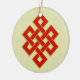 Den ändlösa fnurran som göras här i rött och gult, är ett av det åtta Auspicious teckenet av buddism, som liknar starkt Celtic knotwork.