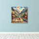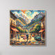 Set in the heart of the Pyrenees, this luminous cityscape captures Andorra la Vella as elegant shoppers wander a sunlit boulevard beneath towering mountain peaks and swirling alpine skies. Warm stone buildings, vintage cars, and café-lined streets create a nostalgic rhythm of travel, style, and highland charm. Perfect for hotel walls or refined interiors, this canvas art brings European mountain romance, color, and wanderlust into any space.