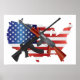 Assault Rifles AR15 och AK47 Semi Automatic Weapons on USA Karta Outline with American Flagga Second Amendment Constitution Illustration Teckning Poster