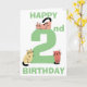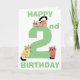 Cute, andra roligtens (andra) födelsedagskort med stort nummer två i färg-grönten. En dörr kattunge ligger sitta ovanpå siffran och två dockor kattunge ligger sitta vid basen av siffran, varje katt är unik med ett annat färg och i en annan position. Ovanför och nedanför kattarna är ord Lycklig (högst upp på kortet) och födelsedag (grund på kortet) i grönt. Inuti kortet hittar du ännu mer söta katter med en mall för att lägga till ditt födelsedagsmeddelande och slutligen en annan doodle-katt på kortets baksida.