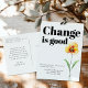Lägg märke till ditt spännande nya kapitel med vårt vykort för flytta om "Byt är Bra". Den här designen har en minimalistisk estetik med lite charm blommigt, som perfekt fångar nystarten på ett nytt hem. Den feta typografin gör en påstående medan vattenfärgen tillför en delikat elegans. Anpassa den med ditt nya adress och söta budskap för att låta de kära veta hur du rör dig. glädjen i din nya början med stil och nåd. Det är perfektens blandning av modern design och innerliga känslor, skapar det vara ett minnesvärt sätt att uppdatera dina vänner och din familj om din omlokalisering.