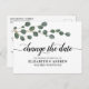 Enkel minimal ändring av Eleganten för datum Grey Eucalyptus Skriptypografi Bröllop Postponement Announcement Postcard