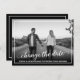 Vilka intressanta tider vi lever i! Många saker har varit tvungna att förändras och Celebrations Studio är här för att hjälpa dig att följa med strömmen. Detta svart-vita "Ändra datum"-fotokort är ett bra sätt att låta de närmaste och kära veta om ändringen av din händelse. Massor av utrymme på baksidan för att anpassa ditt meddelande efter dina omständigheter.