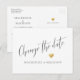 Modern och minimalistisk "ändra datum"-inbjudan postkort med en söt guldfjäril och elegant script kalligrafi och formella typsnitt, i svart och vitt.