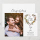 Det här eleganta fotot ändra datum kortet innehåller ditt foto och en vacker blomsterkrans som innesluter ditt manus för förseningsmeddelande ovanför dina namn, datum och plats. Baksidan har detaljer om ditt speciella meddelande. Designad av Thisisnotme©
