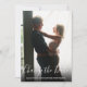 Detta moderna manusfoto datumändringskort har en full bleed-foto överlagd med ett manus datumändring ovanför dina namn och meddelande i vit text.